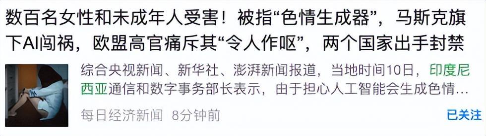 Grok机器人“数字脱衣”功能一出,不仅满足广大网友的猎奇心理,还让用户进而发展成为付费用户,马斯克把人性拿捏得“恰到好处”。